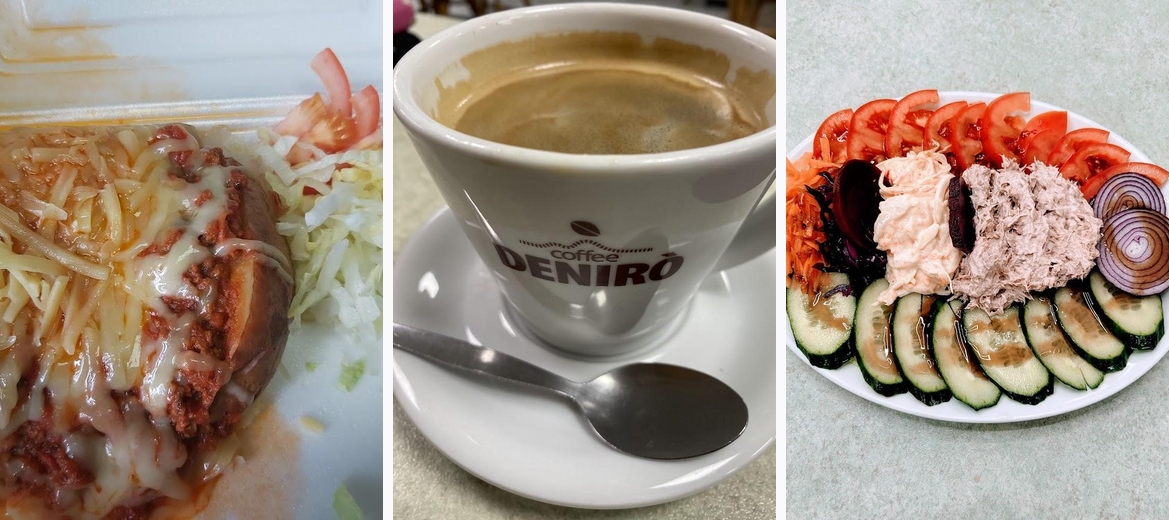 A nice cafe and restaurant selling mainly chicken dishes . Friendly staff and good service. I've only been here 3 or 4 times but it's been nice dining in when I had the chance. It is reasonably priced. My favourites are the baked potato with bolognese, baked potato with tuna and the Nosh chicken which comes with a generous serving of chips and a side salad. It was sooo good .I also have done takeaway from here.